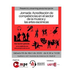 AMPE (Asociación de Músicos Profesionales de España) y ARE (Asociación de Regiduría de Espectáculos) organizan la Jornada sobre acreditación de competencias en la música y las artes escénicas. Un espacio esencial para profesionales y agentes del sector donde se abordarán los retos y oportunidades del reconocimiento oficial de la trayectoria laboral.