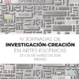 Las IV Jornadas de Investigación-Creación en Artes Escénicas reunirán el 23 y 24 de marzo en la RESAD a docentes, investigadores y creador@s para explorar nuevas pedagogías, procesos creativos y perspectivas contemporáneas. Conferencias, presentaciones, sesiones abiertas y una amplia cartografía de proyectos conforman un espacio de encuentro para la experimentación y el pensamiento escénico.