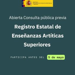 El Ministerio ha iniciado el trámite de consulta pública previa del proyecto de Real Decreto que regulará el régimen, organización y funcionamiento del Registro Estatal de Enseñanzas Artísticas Superiores. En esta fase, previa a la redacción del borrador, se busca conocer las necesidades y perspectivas del sector. El plazo de participación estará abierto hasta el 5 de mayo.