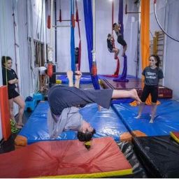 Trapecistas en la escuela de Zirkozaurre, en Bilbao